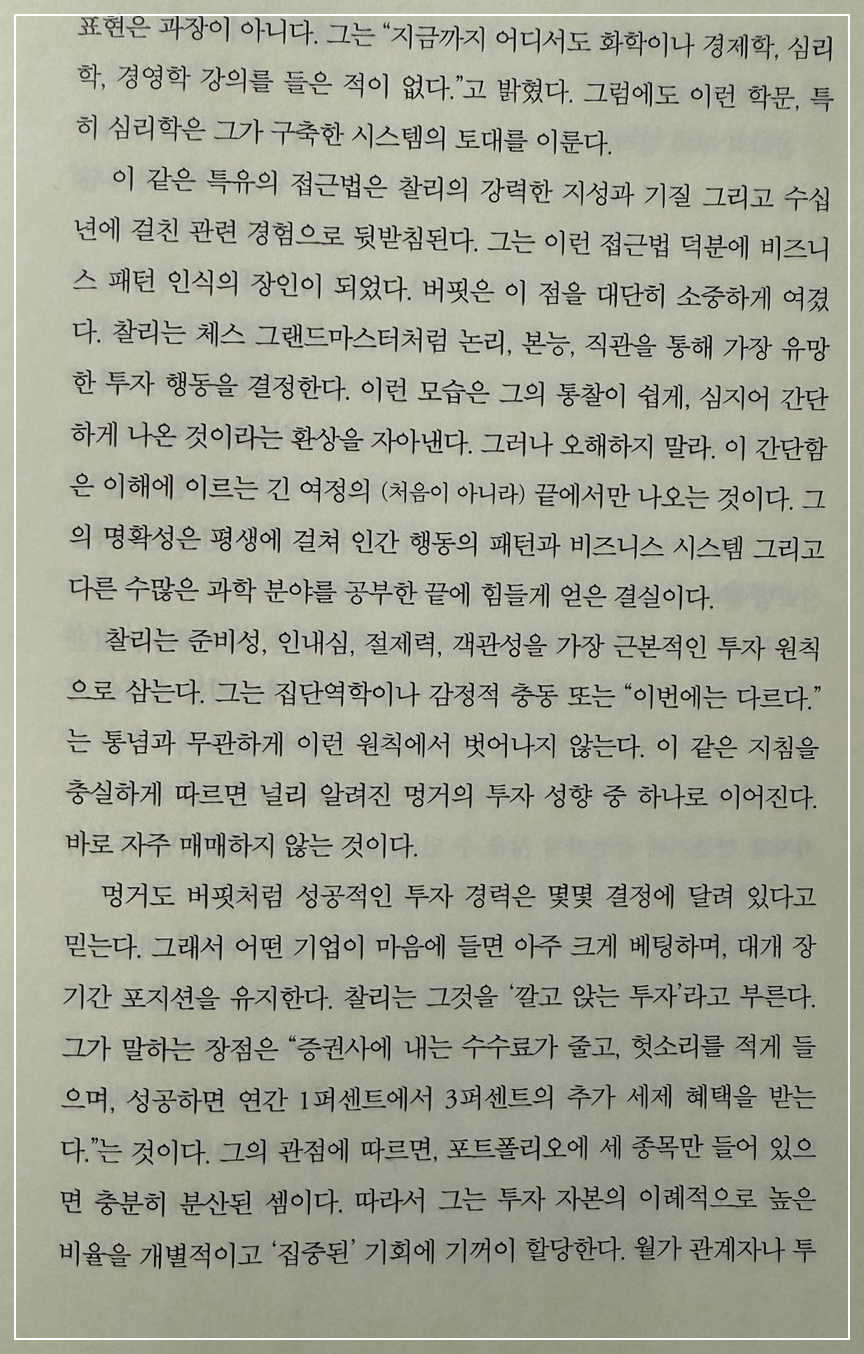 이 책을 읽고 제대로 이해한다면, 투자와 경영을 넘어 더 깊이 사고하는 습관을 기를 수 있겠다.