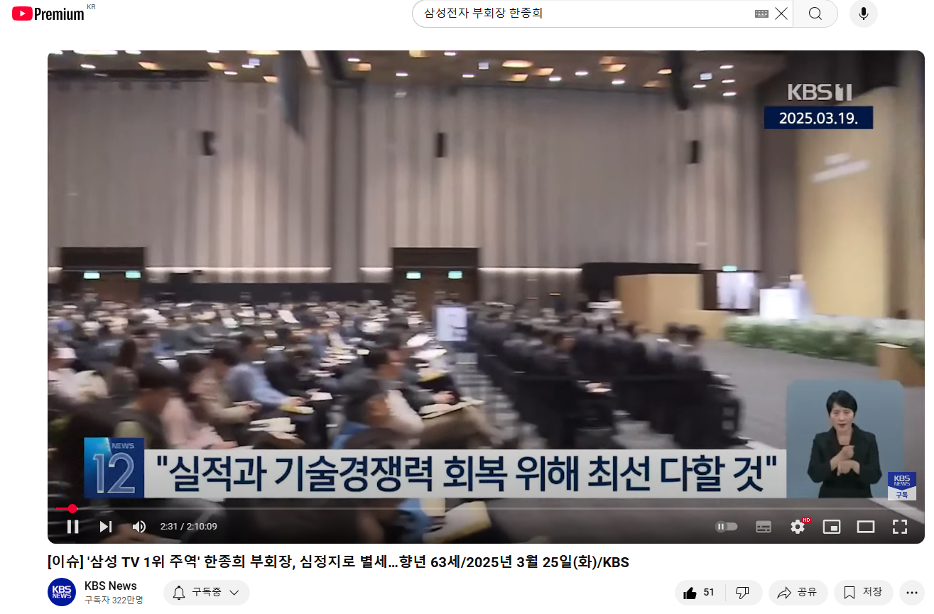 19년간 TV '세계 1위' 이끈 주역…한종희 삼성전자 부회장 별세 | 중앙일보