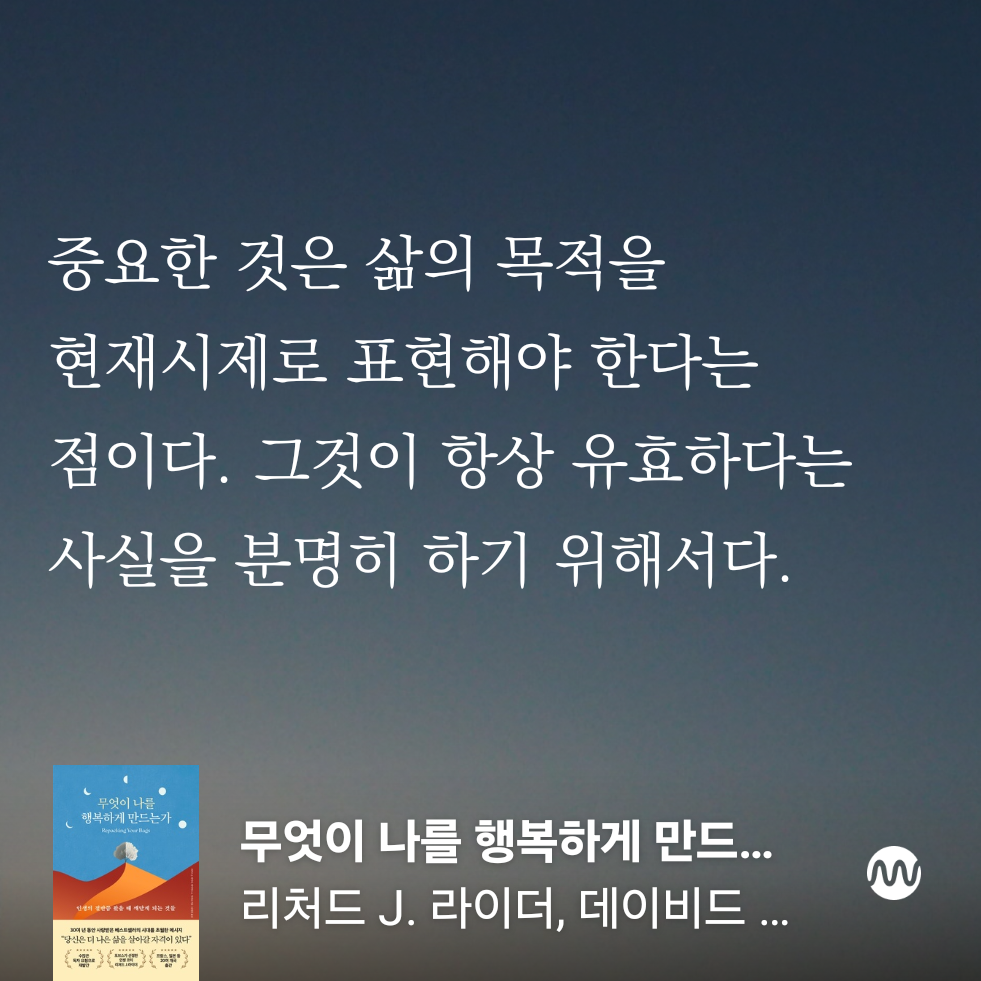 - 행복은 목표 없는 성공이 아니라, 목적 있는 삶에서 온다.