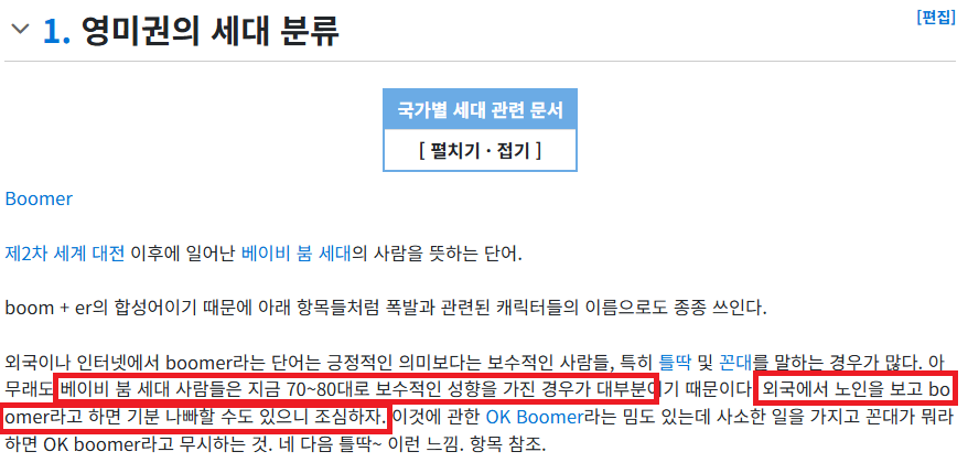 꼰대, 틀딱 = 영어로 boomer 하나 뿐이다.